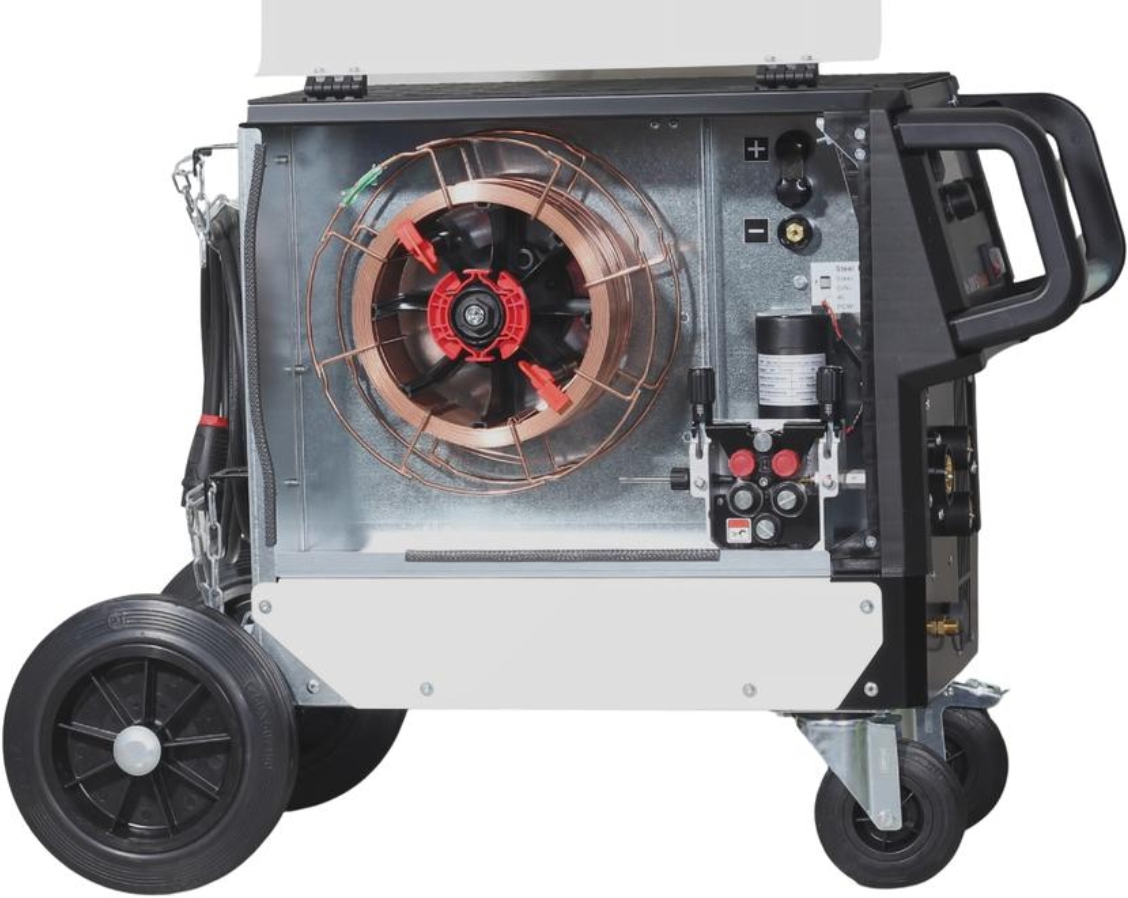 Výkonově je svářečka vhodná pro dráty o průměru 0,6-1,2 mm, použít lze cívky o průměru 200 mm (do 5 kg) a 300 mm (do 18 kg). Svářečka je vybavena čtyřkladkovým posuvem drátu s podávacími kladkami 22/30 - poháněné jsou nejen kladky podávací, ale i kladky přítlačné. Manipulaci s drátem nebo výměnu kladek usnadňuje LED osvětlení vnitřního prostoru podavače.