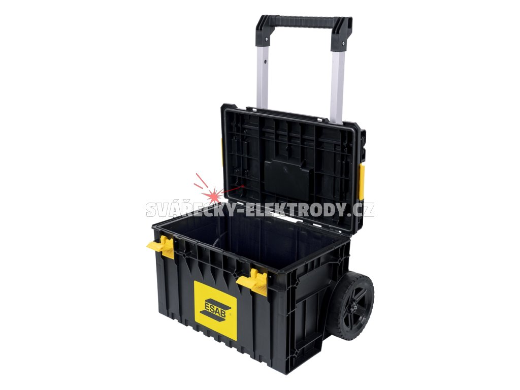 ESAB Gear Case s kolečky nabízí přepravní kapacitu 52 litrů. Manipulaci s boxem usnadňuje výsuvné madlo a zejména robustní terénní kola (∅ 22 cm), která umožnují přepravu boxu na jakémkoli povrchu. Zesílené madlo a zámky zajišťují dlouhodobou odolnost i v náročném průmyslovém prostředí.