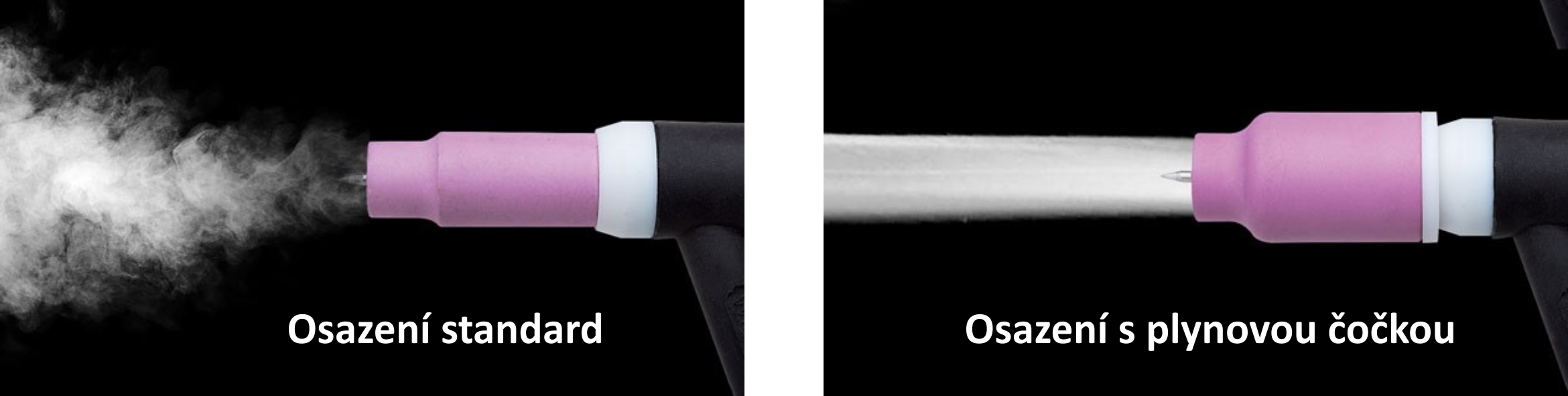 Proudění ochranného plynu s osazením STANDARD a S PLYNOVOU ČOČKOU