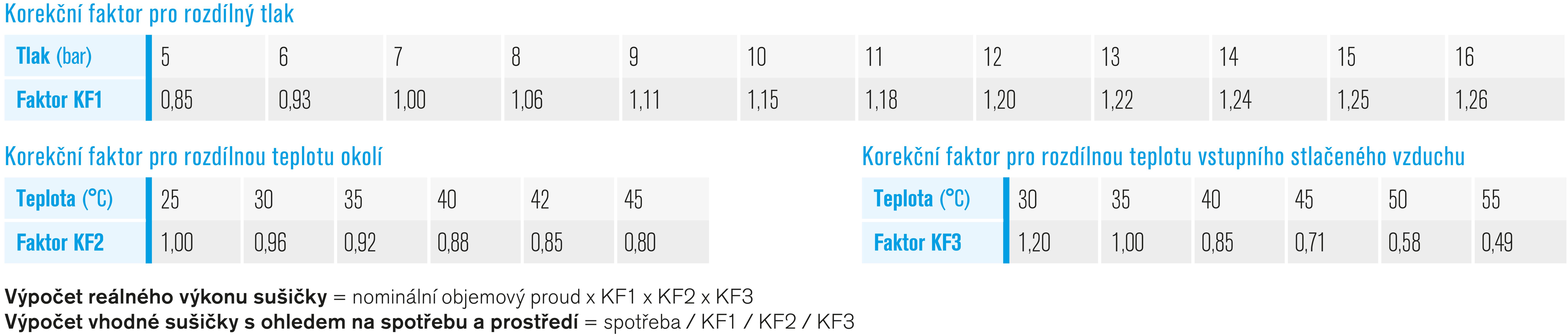 Při uvedených referenčních podmínkách je objemový proud sušičky 600 l/min. Pro jiné podmínky než referenční je nutné kalkulovat s tzv. korekčními faktory.