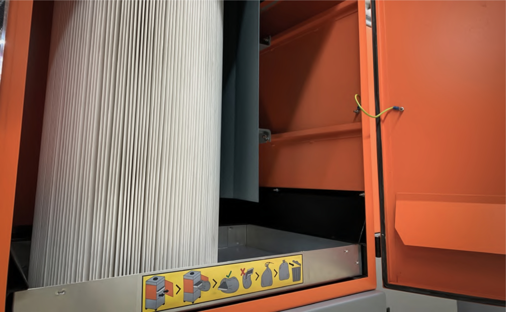 Čištění hlavního filtru probíhá zcela automaticky. Částice zachycené ve filtrační patroně jsou dle potřeby uvolňovány pomocí rotační dýzy a impulsů tlakového vzduchu. Uvolněné částice padají do sběrné nádoby, kterou lze po jejím naplnění vyjmout, zlikvidovat a nahradit za novou nádobu.