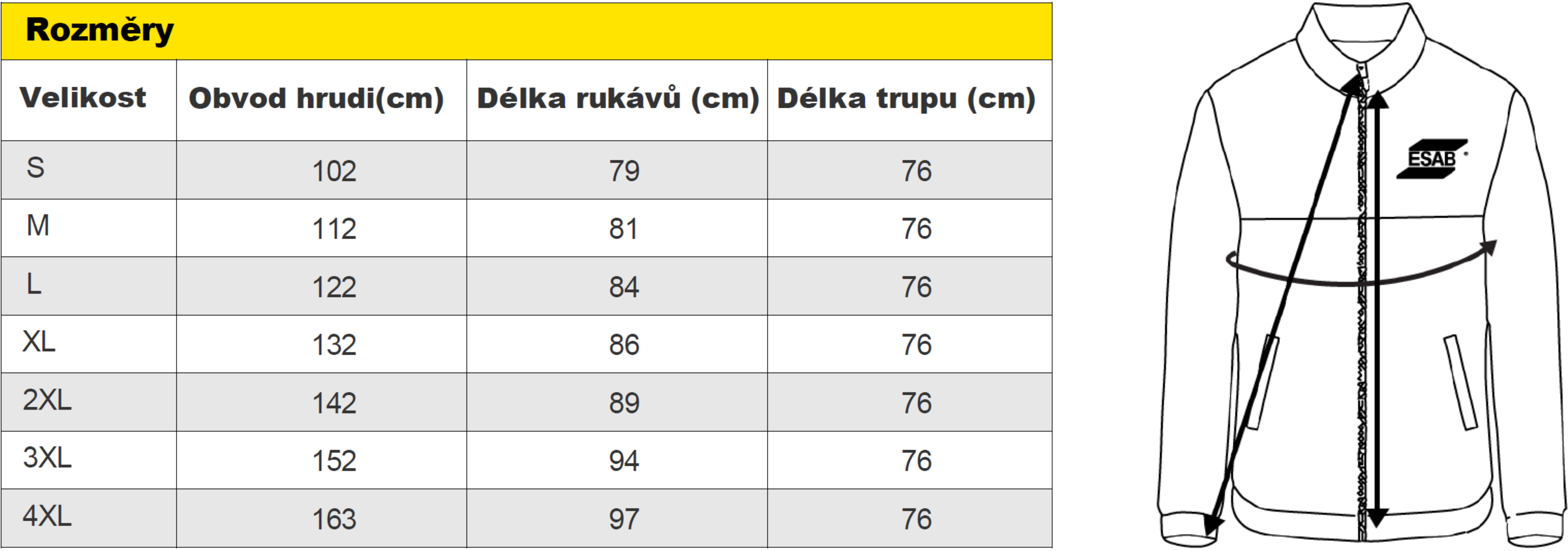 Pro správný výběr velikosti je nutno zohlednit spodní prádlo. To platí zejména pro použití v zimním období. Vždy je proto nutné při výběru dle obvodu hrudníku počítat s dostatečnou rezervou. Upozorňujeme, že oblečení pro svářeče je navrženo tak, aby chránilo nositele před ohněm a dalšími riziky. Příliš těsné oblečení se proto nedoporučuje.