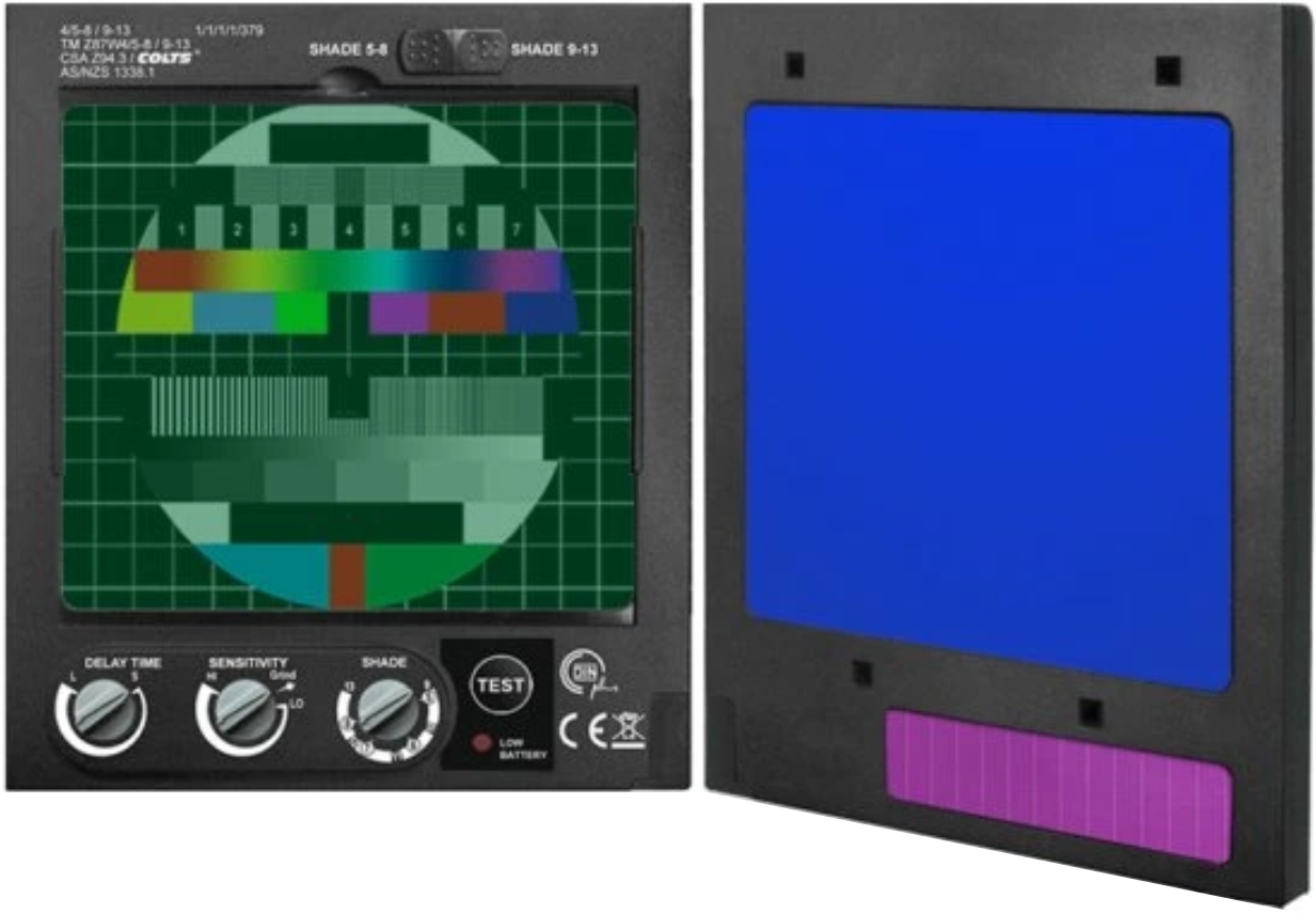Samostmívací svářečská kukla. Klasifikace kazety 1/1/1/1. Tmavý stav DIN 5-8/9-13. Světlý stav DIN 3,5. Průzor 85 × 95 mm. 4 senzory. Advanced Real Color. Vyměnitelná baterie.