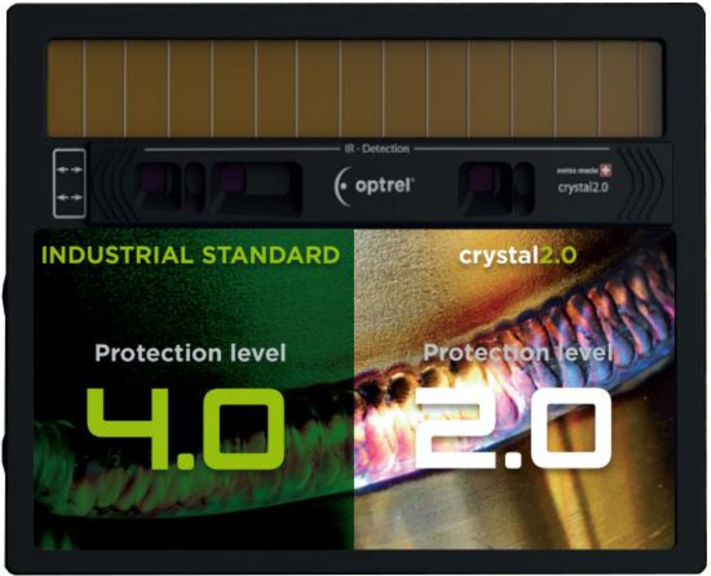 Plně automatická svařovací kukla crystal2.0 je vlajkovou lodí švýcarského výrobce, společnosti OPTREL. Díky unikátním technologiím True Color View a Crystal Lens Technology 2.0 (CLT 2.0) poskytuje zcela realistické zobrazení barev, funkce Autopilot sama nastaví úroveň zatemnění DIN, samozřejmostí je i přepínač režimu broušení/svařování a vyměnitelné baterie.
