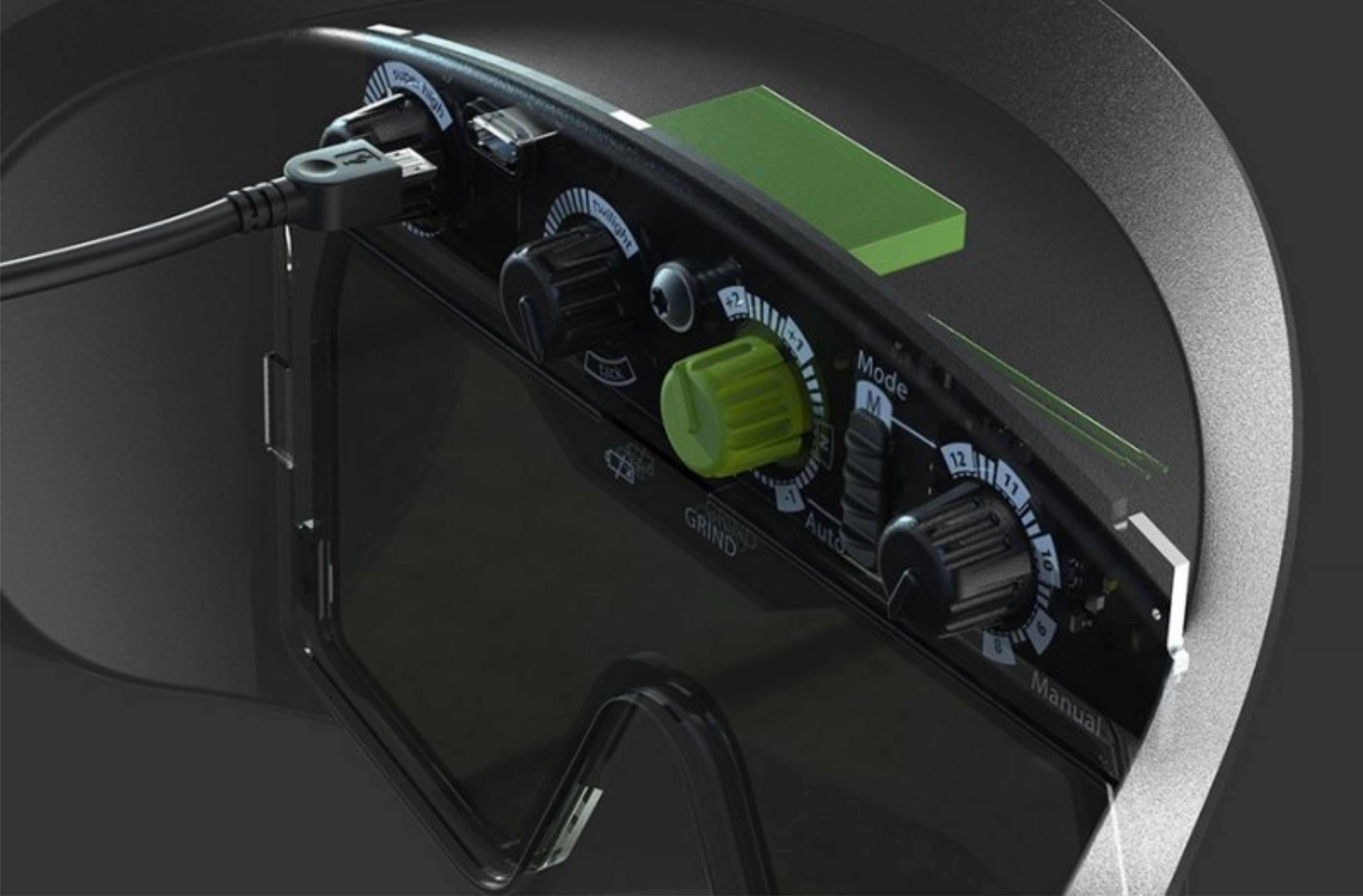 Kukla umožňuje přepnutí do režimu broušení. Tlačítko přepnutí "Grind on/off" je na vnější straně kukly a díky své velikosti se snadno ovládá i v rukavicích. Po stisku tlačítka se kukla přepne do neaktivního stavu DIN 3 a poskytuje tak nejen důkladnou ochranu celého obličeje před jiskrami a okujemi, ale i skvělý výhled na místo broušení.